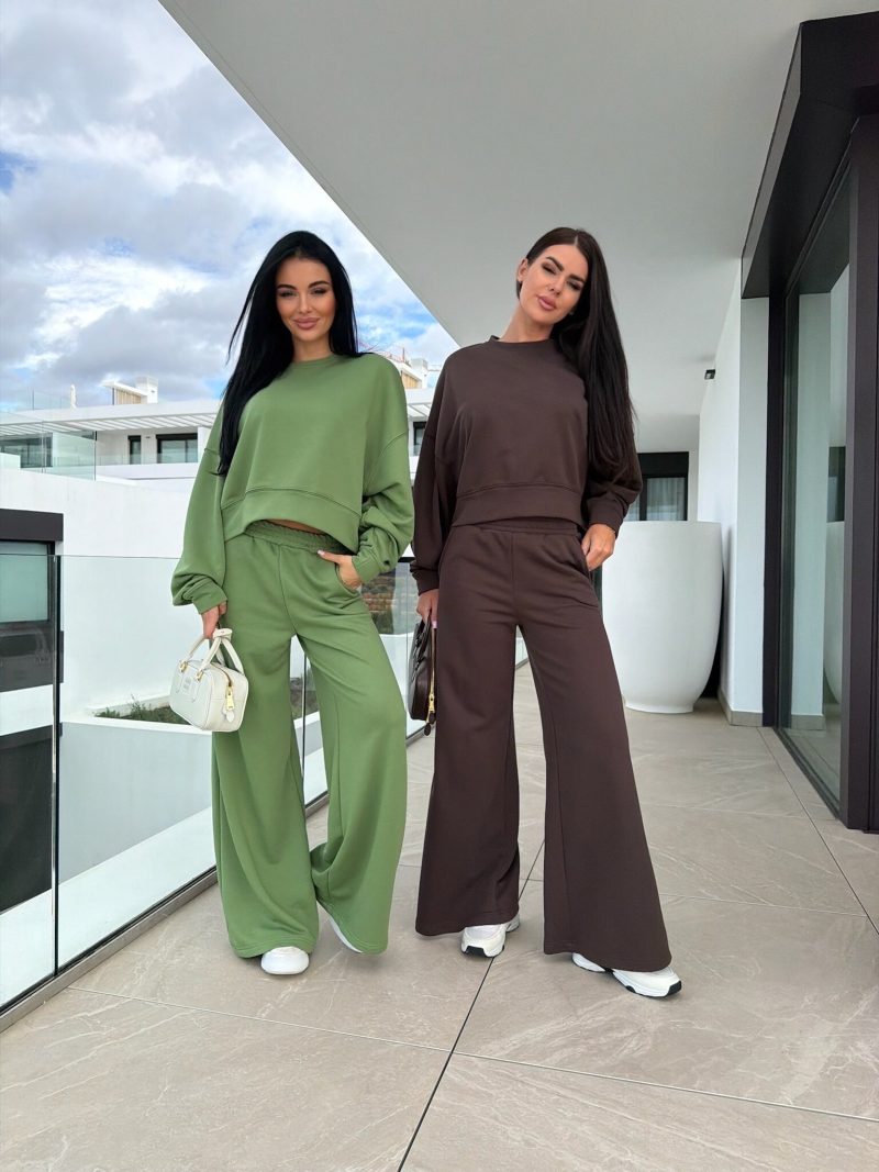 Lühikese lõikega pusa + elastse vöökohaga püksid. Sileda pinnaga. Valmistatud mugavast kangast.