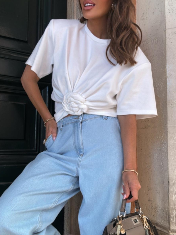 Premium-kvaliteediga T-särk pakitud õlgadega.