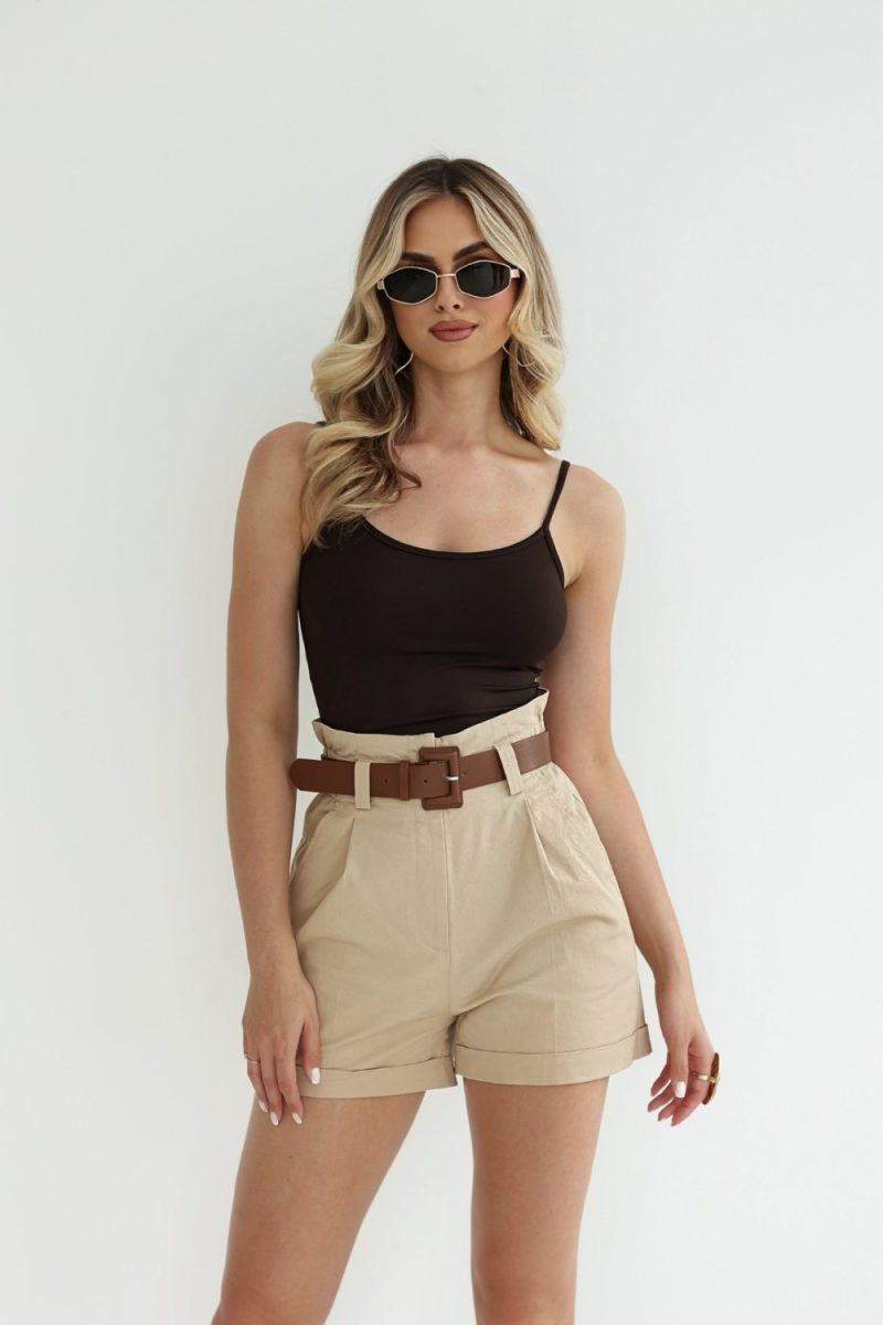 Kõrge vööga lühikesed püksid.